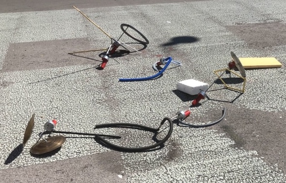 toute liberté. Il s’agit de mettre en mouvement ces objets uniques. Une danse se crée dans l’espace, composée de didérentes formes personnelles rappelant des animaux. Les objets restent dans la salle et sont démontés à la fin par les organisateurs.
